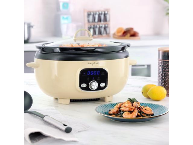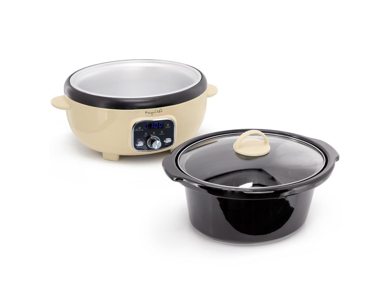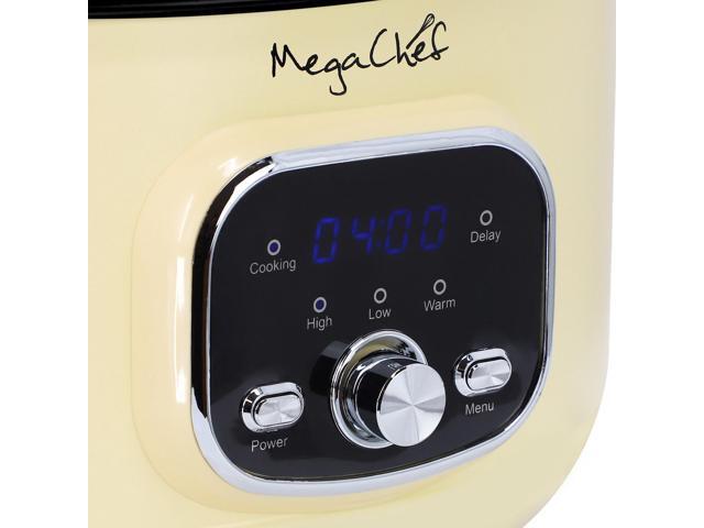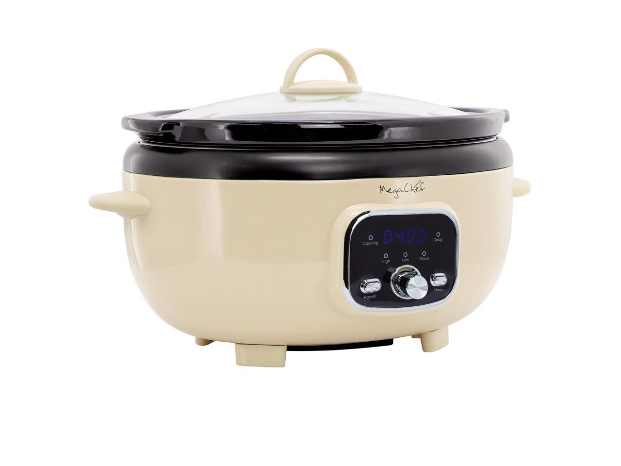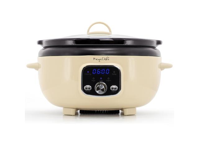 MegaChef 3.5 Liter Oval Electric Digital Slow Cooker in Cream with Black Pot