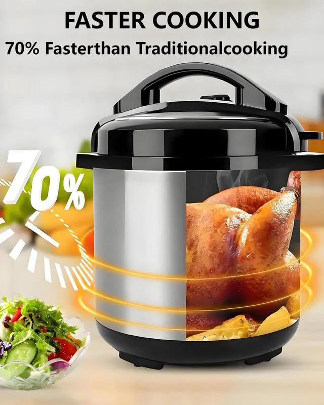 Cooks up to 70% faster than traditional stovetop methods. Tough cuts of meat become tender in 30 minutes, and whole grains turn creamy in a fraction of the time. High-pressure sealing locks in moisture, flavor, and nutrients for restaurant-quality results.
