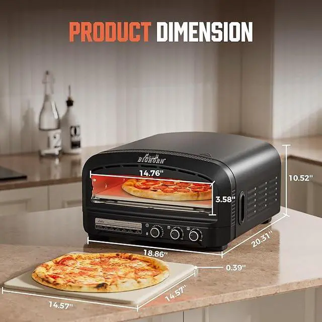 Easy to CleanThe countertop electric pizza oven features a sleek, wrinkle black paint finish that resists oil stains and fingerprints, and the removable pizza stone makes it easy to clean