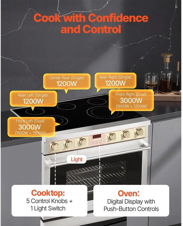 Control Type (Cooktop): 5 Knobs (Burners) + 1 Knob (Oven Light), 6 Knobs in Total