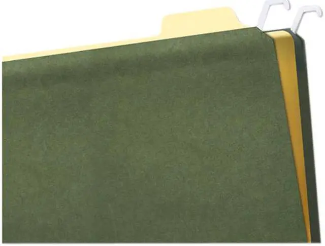 Find files fast with this revolutionary, patented design. Unique style lowers the top rail of the hanging folder so that the tabs of your interior files are completely visibletheres no need for plastic tabs on the hanging file. Expands 1/2" to accommodate growing files. 9 pt. stock. Folder Size Type: Legal; Max Folder Expansion: 0.5"; Folder Color: Standard Green; Color Family: Green.