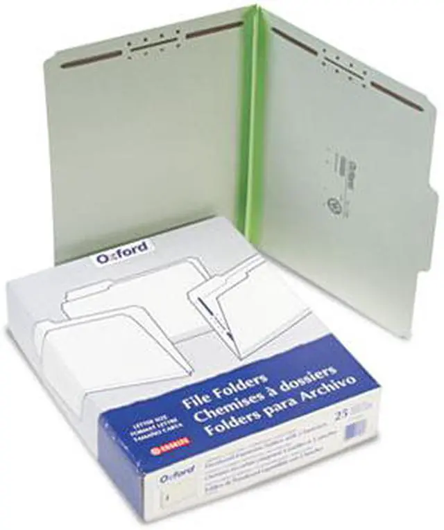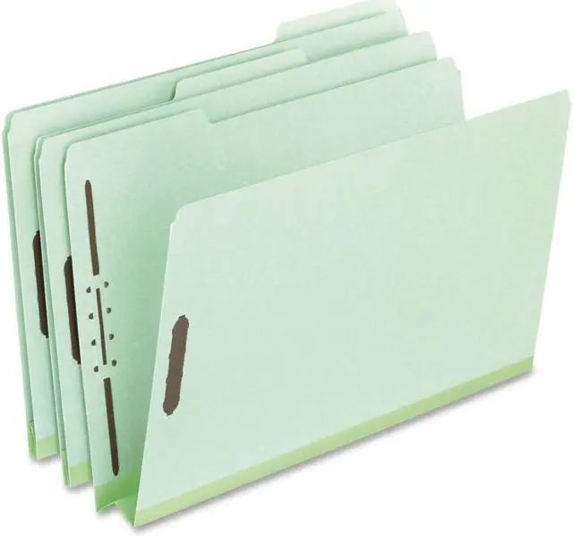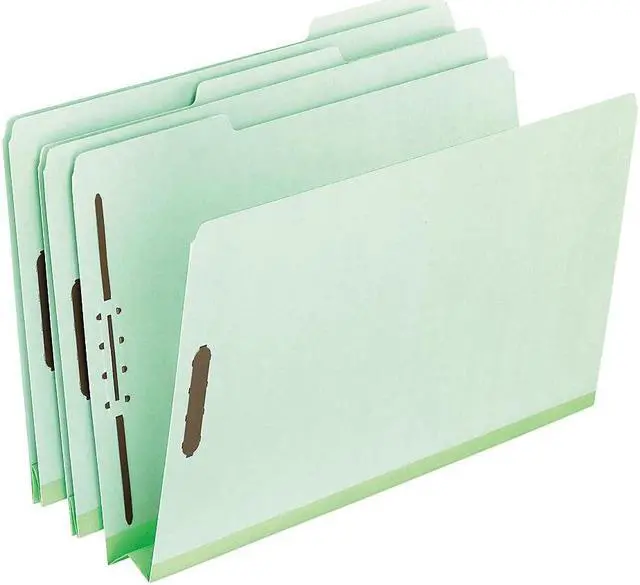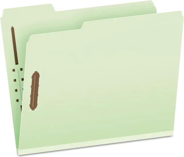 Extra heavy-duty 25 pt pressboard provides outstanding durability, safeguards paperworkideal for frequently accessed files. 2" capacity prong fasteners embossed into front and back covers holds papers firmly in place. Rip-proof tape reinforced gussets. 1/3-Cut Tabs. Folder Size: Letter; Total Number of Dividers: 0; Total Number of Fasteners: 2; Max Folder Expansion: 2".