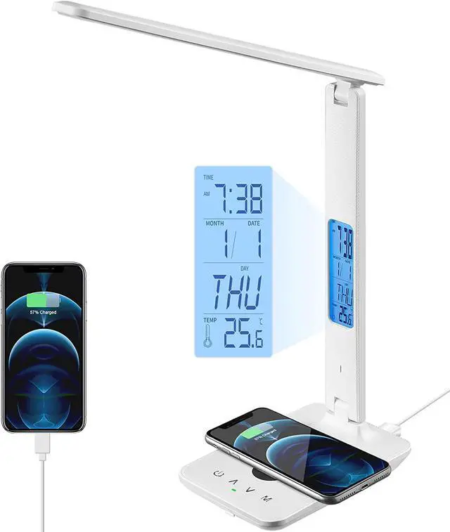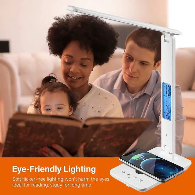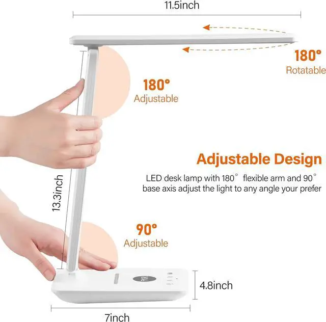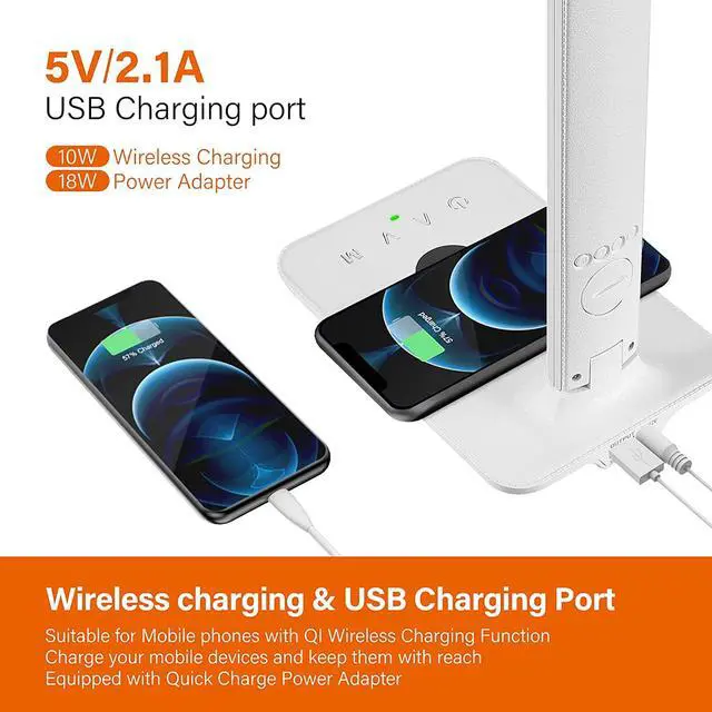 POWERFUL CHARGING: Owning both USB charging port and fast wireless charger (needs 5V/2A adapter, already Included) Which means you can charge two devices and use the desk lamp to work at the same time.