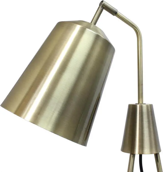 Illuminate your living space with this loft style floor lamp. It features a spotlight shaped shade in a stunning antique brass finish for a sophisticated look while the black tripod base adds an industrial touch. Perfect for your bedroom, office, foyer or living room!