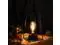 The battery lamp supported by iron wires, matched with the slender light bulb exposed in the center of the black base, the warm bulb's light scattered around, setting off the retro and elegant house atmosphere.