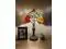 12"W*12"D*19"H, Zinc Alloy base with bronze finish. On/Off switch, UL Listed, Each piece of stained glass is hand-soldered into place using the traditional copper foil technique.