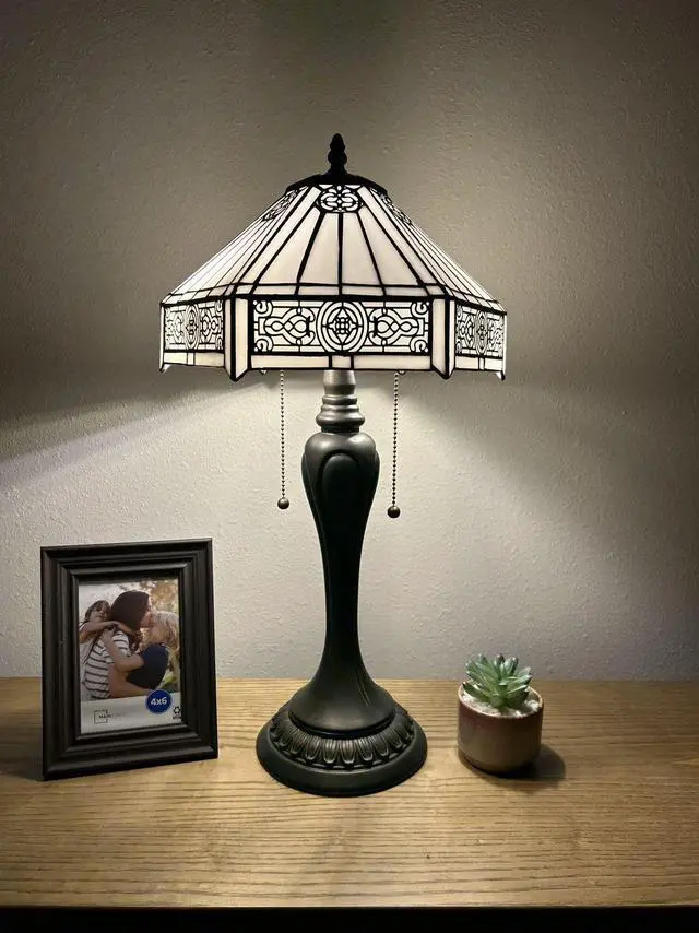 ENJOY DECOR LAMPS Tiffany Style Table Lamp White Hexagon Stained Glass LED Bulbs Included for Living Room Bedroom Bedside 12"W*12"D*22"H