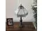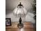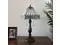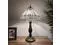12"W*12"D*22"H. Stained glass shade. Resin base with bronze finish. Pull Chain switches, LED Bulbs Included, UL listed. Each piece of stained glass is hand-soldered into place using the traditional copper foil technique.