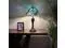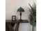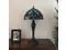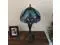 12"W*12"D*22"H. Stained glass shade. Resin base with bronze finish. Pull Chain switches, LED Bulbs Included, UL listed. Each piece of stained glass is hand-soldered into place using the traditional copper foil technique.