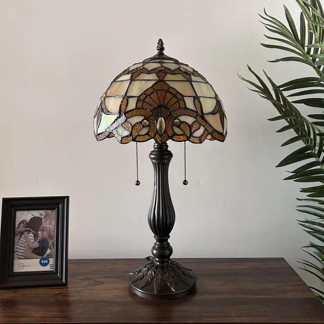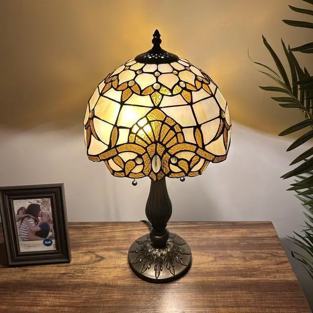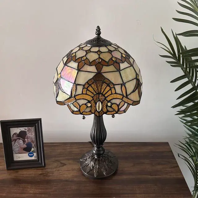 ENJOY DECOR LAMPS Tiffany Style Table Lamp Gold Stained Glass Baroque Style Lavender LED Bulbs Included Bedroom Living Room 12"W*12"D*22"H