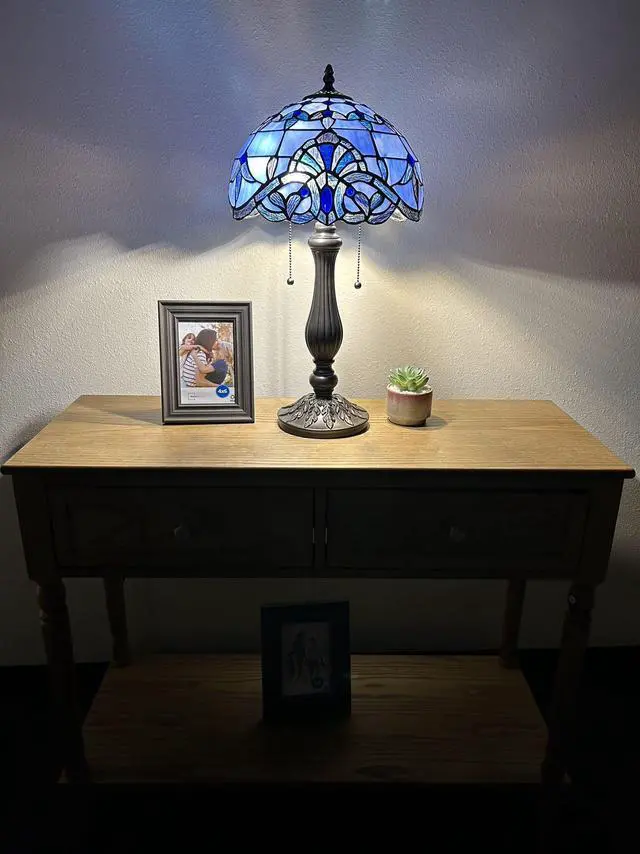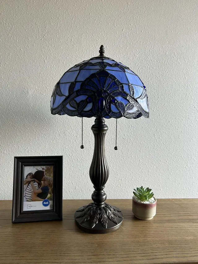 ENJOY DECOR LAMPS Tiffany Style Table Lamp Blue Stained Glass Baroque Style Lavender LED Bulbs Included for Living Room Bedroom 12"W*12"D*22"H