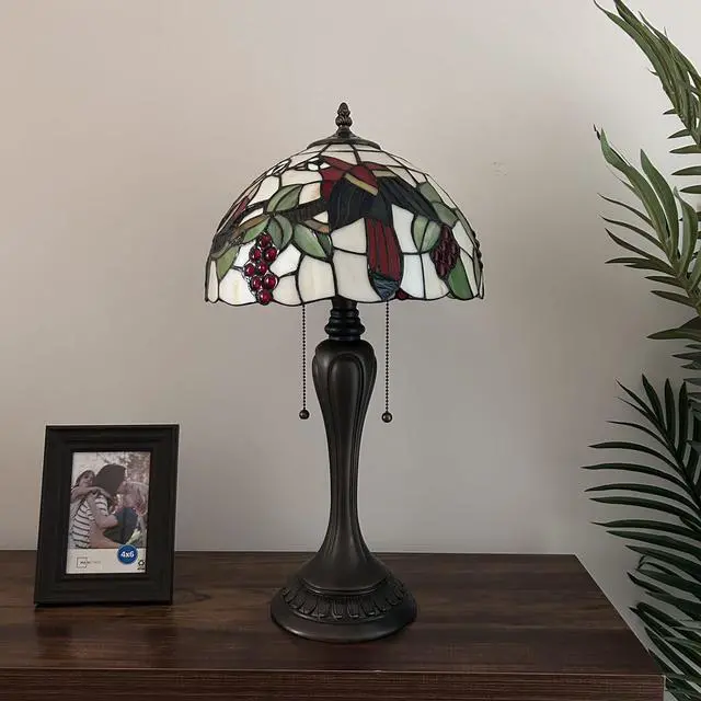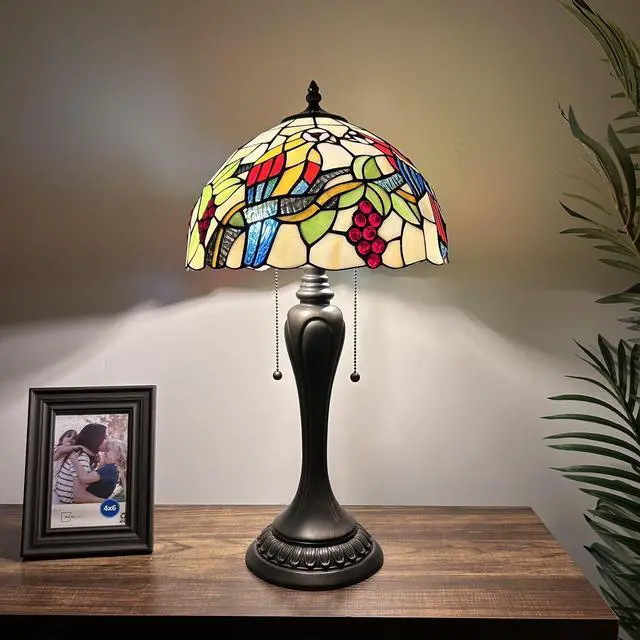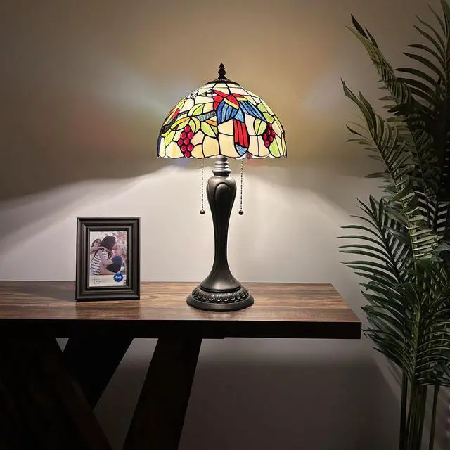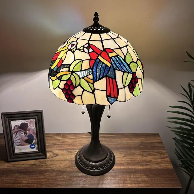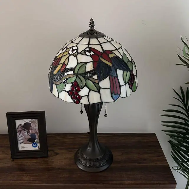 ENJOY DECOR LAMPS Tiffany Style Table Lamp Parrots Blue Red Green Stained Glass Included LED Bulb for Living Room Bedroom Bedside 12"W*12"D*22"H