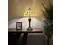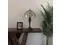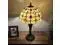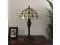 12"W*12"D*22"H. Stained glass shade. Resin base with bronze finish. Pull Chain switches, LED Bulbs Included, UL listed. Each piece of stained glass is hand-soldered into place using the traditional copper foil technique.