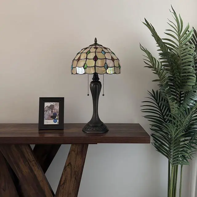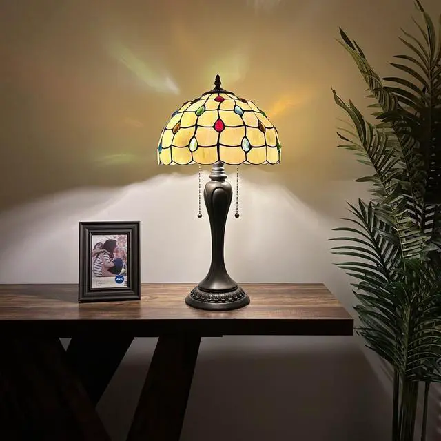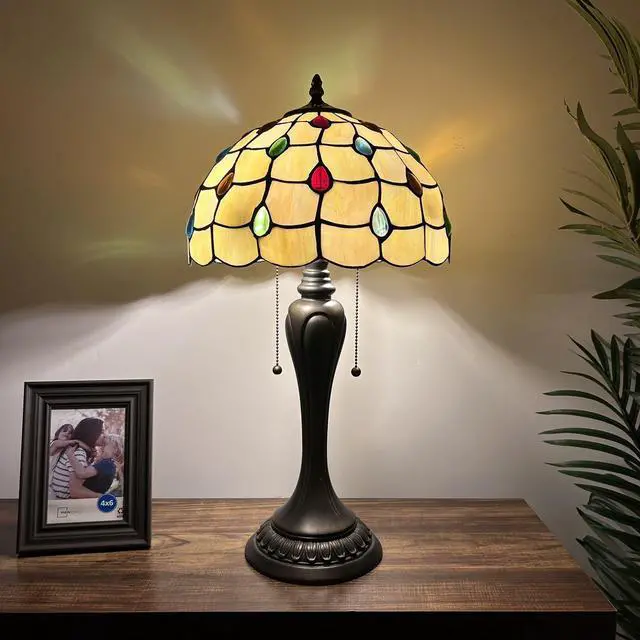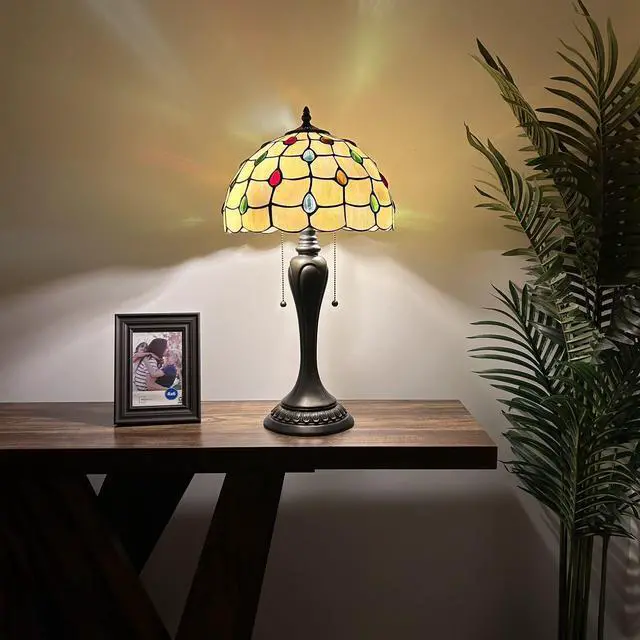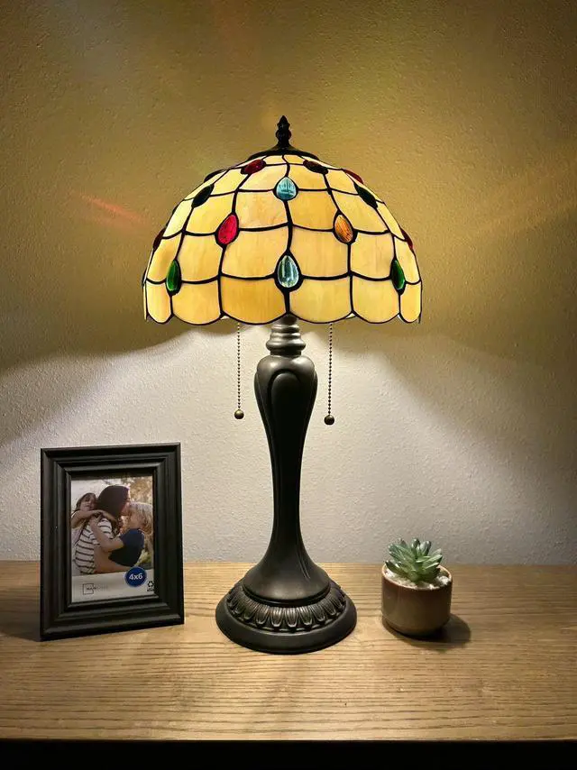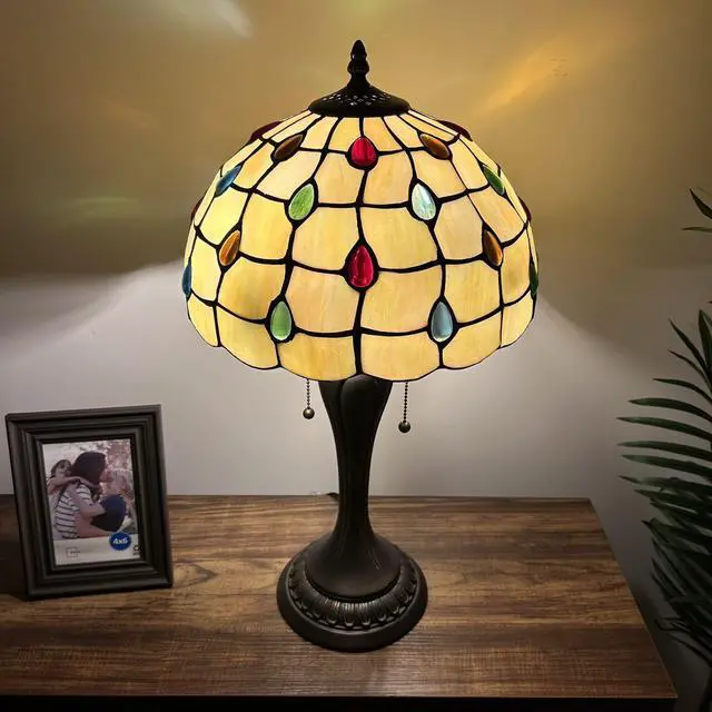 ENJOY DECOR LAMPS Tiffany Style Table Lamp Gold Stained Glass Crystal Beans LED Bulbs Included for Living Room Bedroom Bedside 12"W*12"D*22"H
