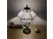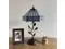 12"W*12"D*22"H. Stained glass shade. Metal and resin base with bronze finish. Pull Chain switch, LED Bulb Included, UL listed. Each piece of stained glass is hand-soldered into place using the traditional copper foil technique.