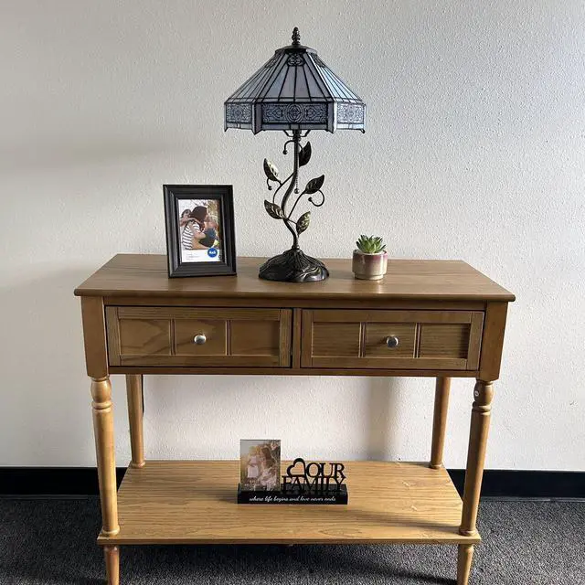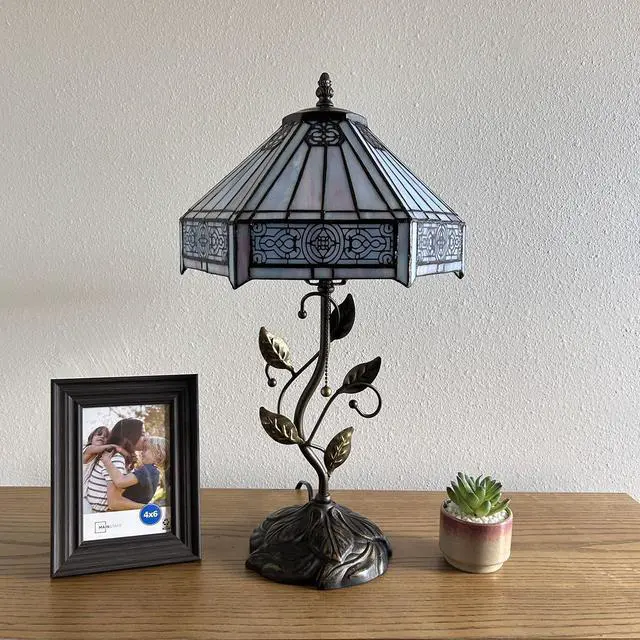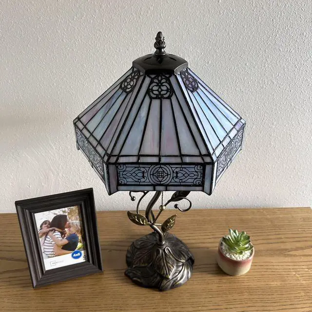 ENJOY DECOR LAMPS Tiffany Style Table Lamp Hexagon Sky Color Stained Glass Included LED Bulb for Living Room Bedroom Bedside 12"W*12"D*22"H