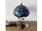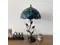 12"W*12"D*22"H. Stained glass shade. Metal and resin base with bronze finish. Pull Chain switch, LED Bulb Included, UL listed. Each piece of stained glass is hand-soldered into place using the traditional copper foil technique.