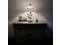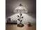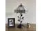 12"W*12"D*22"H. Stained glass shade. Metal and resin base with bronze finish. Pull Chain switch, LED Bulb Included, UL listed. Each piece of stained glass is hand-soldered into place using the traditional copper foil technique.