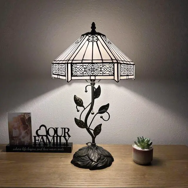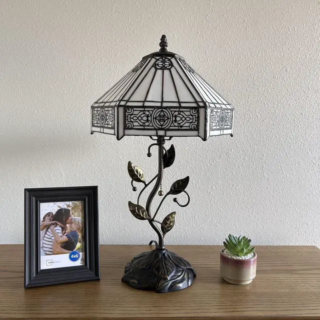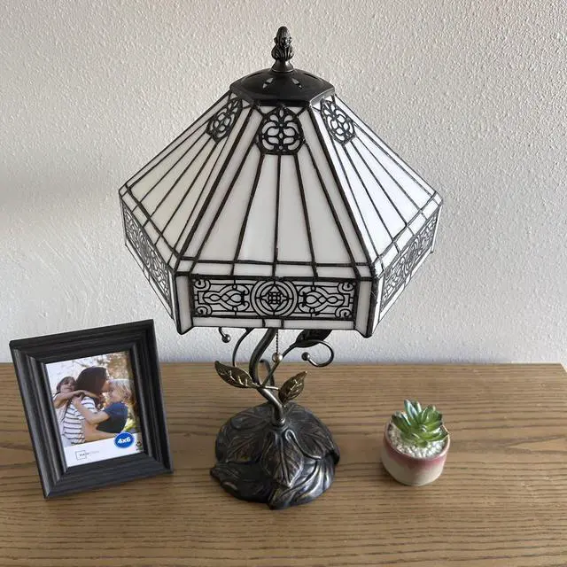 ENJOY DECOR LAMPS Tiffany Style Table Lamp White Hexagon Stained Glass Included LED Bulb for Living Room Bedroom Bedside 12"W*12"D*22"H
