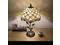 12"W*12"D*22"H. Stained glass shade. Metal and resin base with bronze finish. Pull Chain switch, LED Bulb Included, UL listed. Each piece of stained glass is hand-soldered into place using the traditional copper foil technique.