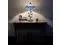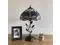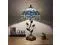 12"W*12"D*22"H. Stained glass shade. Metal and resin base with bronze finish. Pull Chain switch, LED Bulb Included, UL listed. Each piece of stained glass is hand-soldered into place using the traditional copper foil technique.