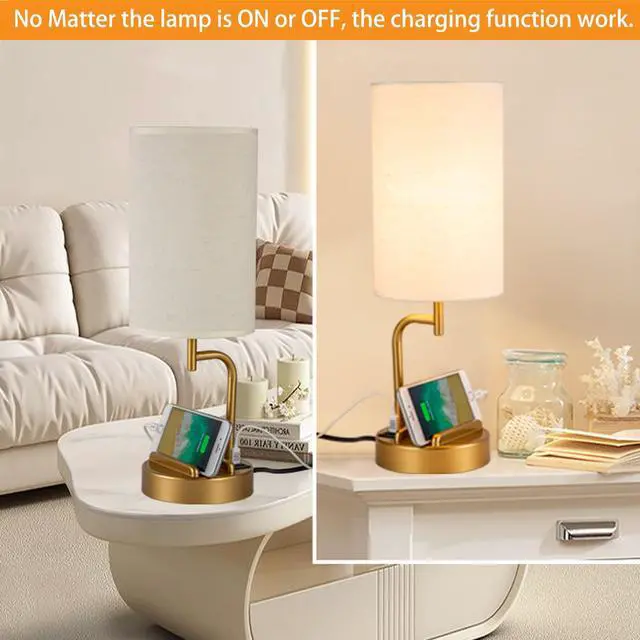- This touch bedside lamp is built-in dual USB A and type C charging ports (5V/2.1A) and AC outlet (Max.7.5A), which keeps you away from the trouble of finding extra power strips to charge your electronic devices.