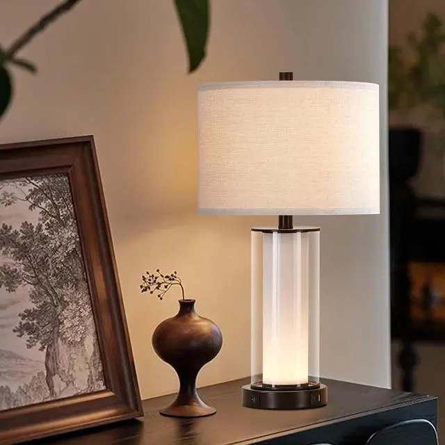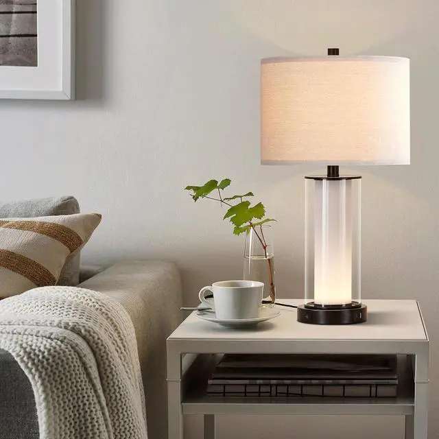 Convenient USB Charging: This glass lamp set features USB A+C charging ports, blending style with practical functionality.
