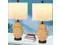 Set of 2 lamps. Each table lamp is 24" high overall. Bases are 6" wide. Shade color and shape type- White drum, linen hardback lampshade.