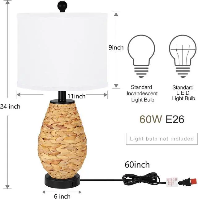 Safe Choice for you: The cord and plug of set of bedside table lamps are UL listed, be nationally recognized for its standard of safety. ON/OFF Push Type, uses a medium base light bulb, 60 watt max, Light bulbs not included.