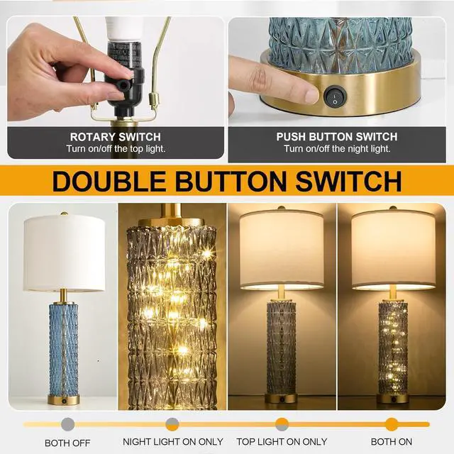 Independent Switch and Night Light Lamps: The bedside lamps have two independent switches to control the main light and night light respectively. Main light on only / Night light on only / Both on / Both off, there are a variety of lighting options to meet different needs