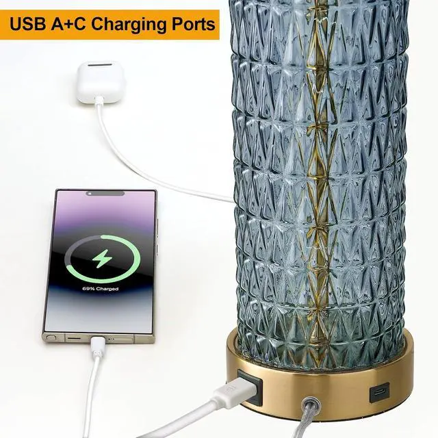 Lamps With USB A+C Ports: Each bedside lamp comes with 2x 5V/2A USB ports. Help you charge your electronic devices. No need to have sockets and cords chaos on your table, keep the surroundings neat and tidy. Works Whether the lamp is on or off, you can easily charge your phone in night with bedside nightstand lamps