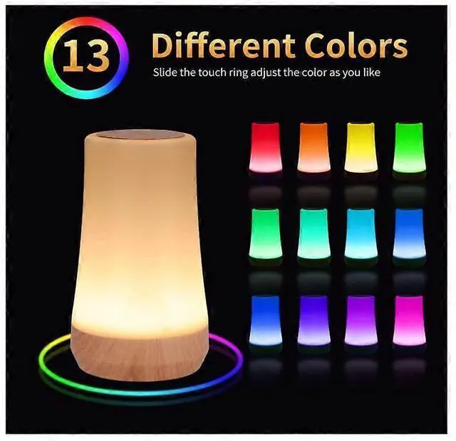Transform your space with this versatile USB-rechargeable bedside lamp, featuring 13 vibrant RGB colors and 5 adjustable brightness levels for customized lighting.
