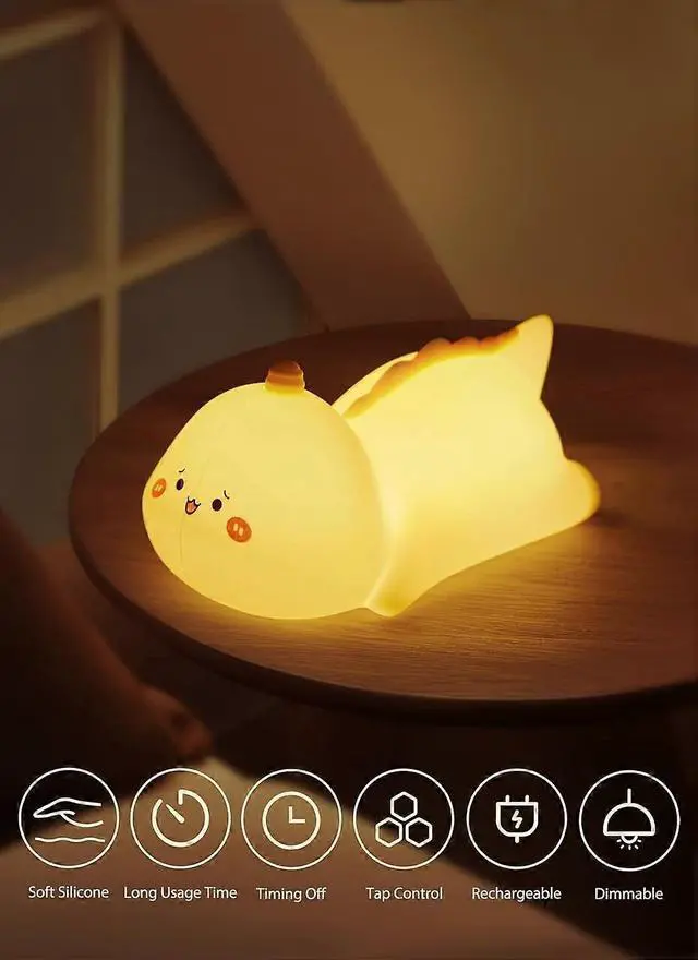 Transform your child's bedroom with this adorable dinosaur night light! Crafted from soft, BPA-free silicone, it's safe and squishy for fun tactile play. Perfect for toddlers and kids, it creates a comforting glow for bedtime routines and nighttime fears.