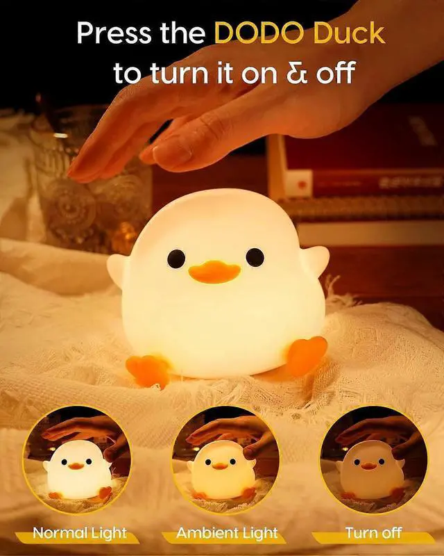 **Easy to Use**: Simply squeeze the duck to activate the light, offering instant comfort and fun for all ages.