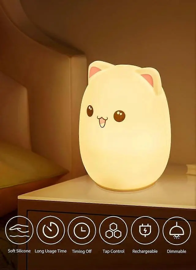 Transform your child's bedroom with this adorable silicone kitty night light, designed for comfort and fun.