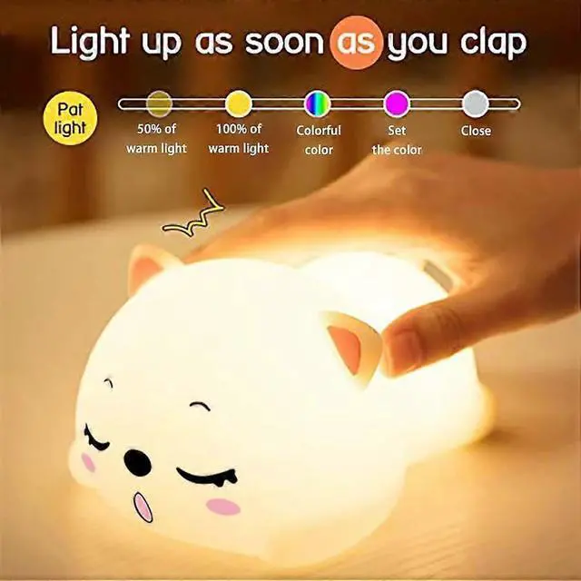 This adorable silicone cat night light provides a soothing, gentle glow perfect for nurseries, kids' bedrooms, and bedtime routines.