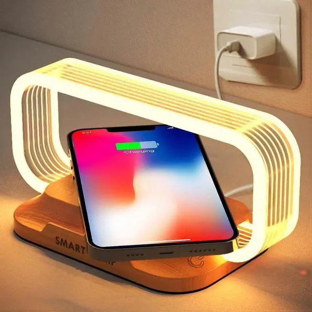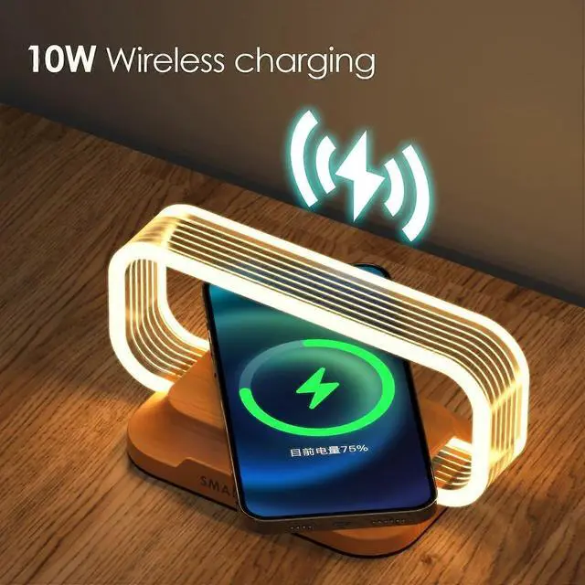 **10W Fast Wireless Charging** - Effortlessly charge compatible phones, headphones, and watches by simply placing them on the lamp base