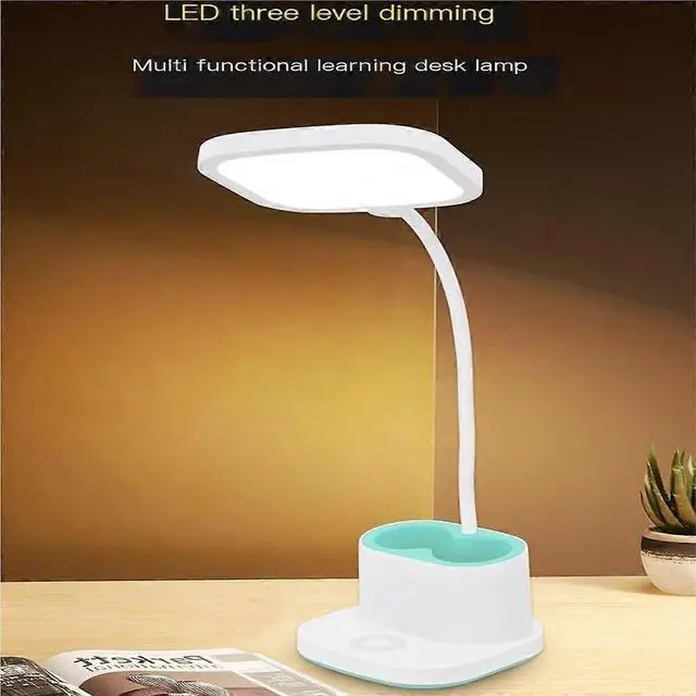 Upgrade your workspace with this versatile desk lamp featuring eye-protecting dimmable light and convenient storage.