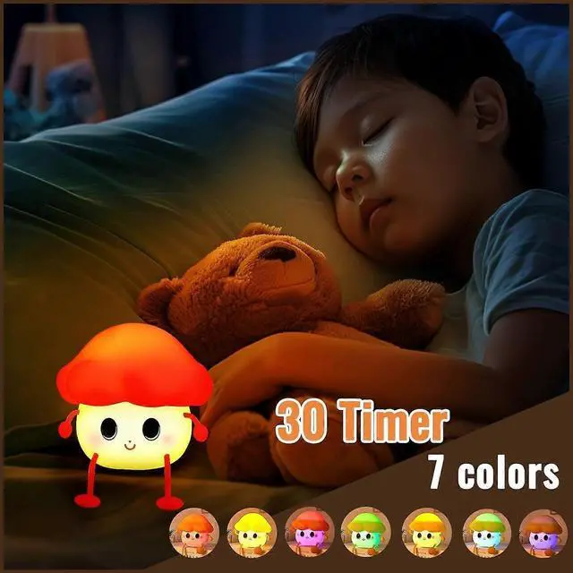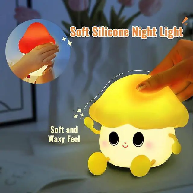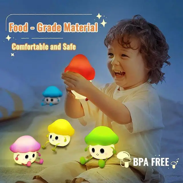 Transform any room with this adorable mushroom night light, designed for safety and versatility. Perfect for nurseries, kids' rooms, or as a calming decor piece, it features a soft, BPA-free silicone build that's gentle for little hands.