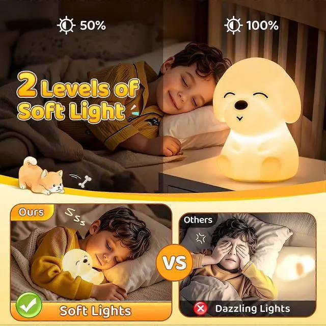 - **2 Brightness Levels & Dimmable**: Adjust from 50% to 100% brightness to suit any need, from bedtime stories to midnight feedings.