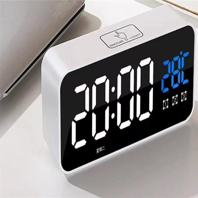 * Large LED Mirror Display6inch LED Mirror display; The big white numbers are clearly visible. Snooze: press the top/snooze