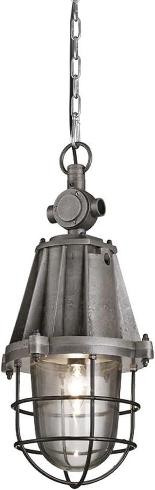 The Carnegie Industrial Pendant Light combines vintage inspiration with modern design, making it a perfect addition to your home or commercial space. Crafted from durable industrial-grade iron, this pendant features a protective steel cage and an antique finish for a timeless, rustic appeal. It supports a variety of bulbs, including LED, Edison, and energy-efficient options, with a wattage of up to 60W candle equivalent (bulbs not included). Ideal for entryways, kitchen islands, bars, or dining areas, this pendant light provides a warm and inviting ambiance.