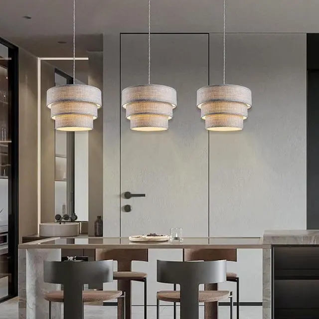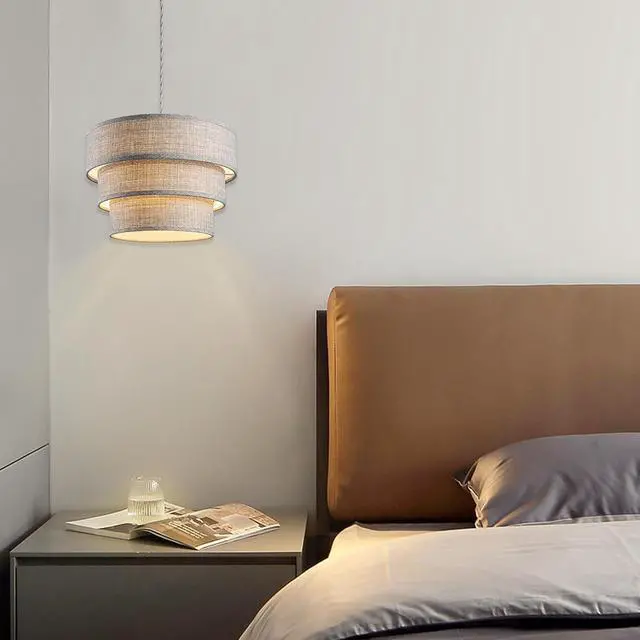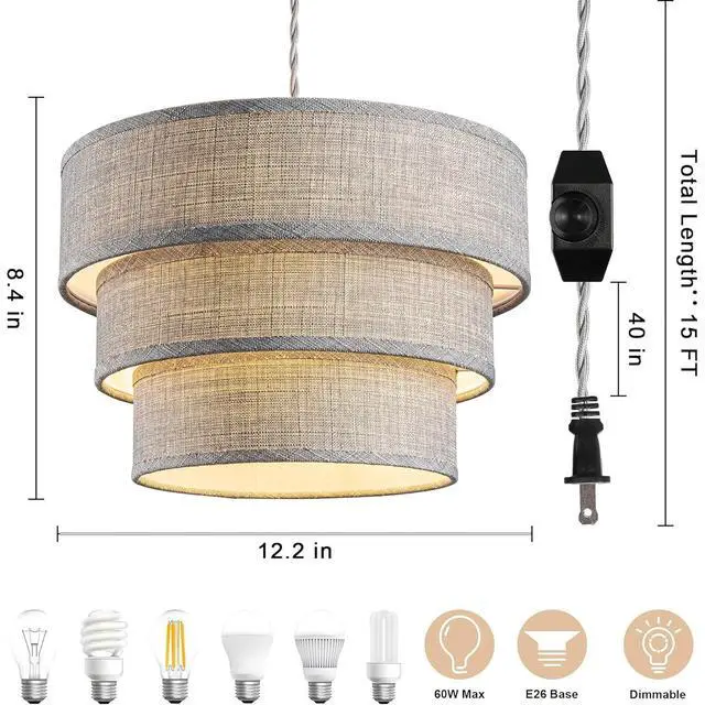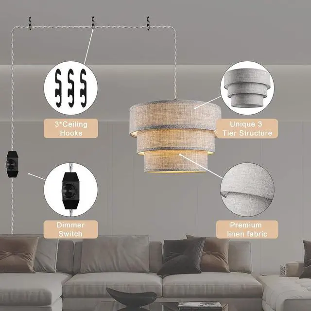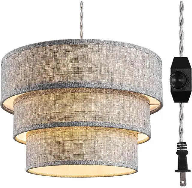 Unique & Attractive 3-Tier Design:This plug in pendant light is designed with three different sizes of grey drum lampshades and gold liner, which is more layered and artistic than ordinary single-layer lampshades. The premium fabric lampshades can soften the light and provide comfortable light to reduce eye strain and protect your eyes.