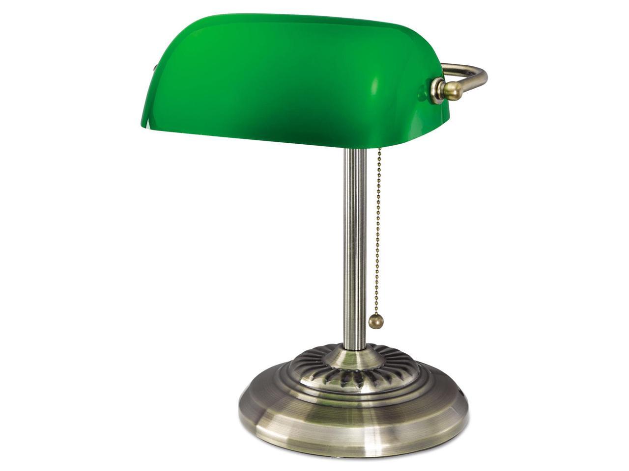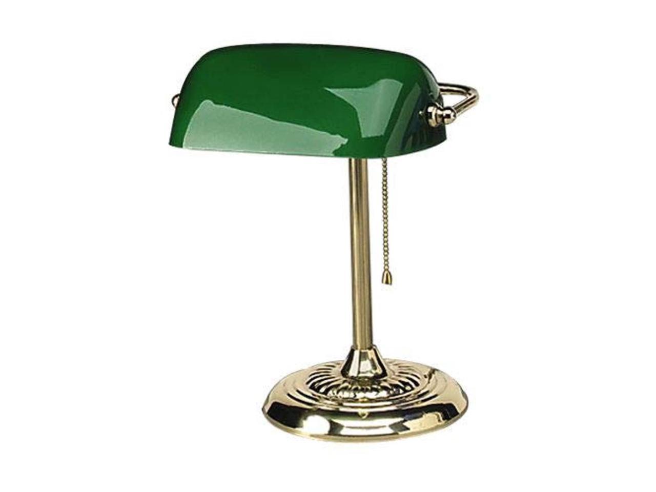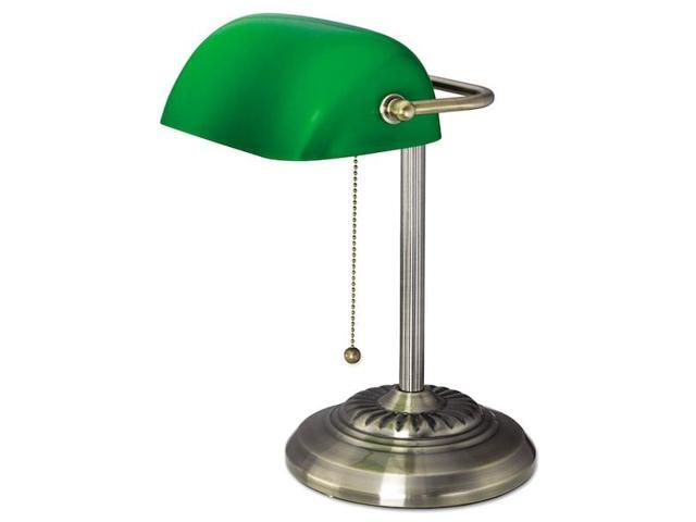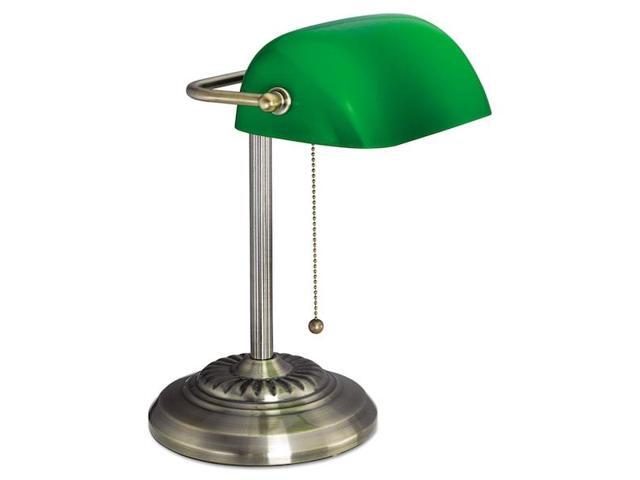 Traditional Banker's Lamp, Green Glass Shade, Antique Brass Base, 14"h LMP557AB