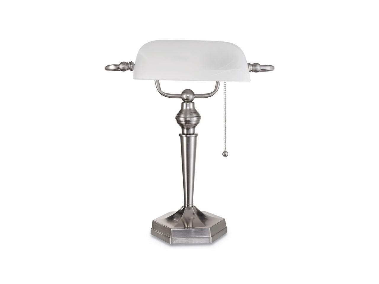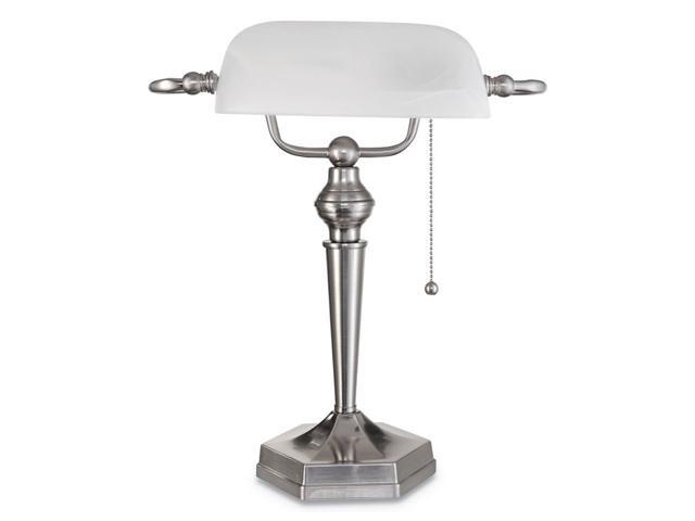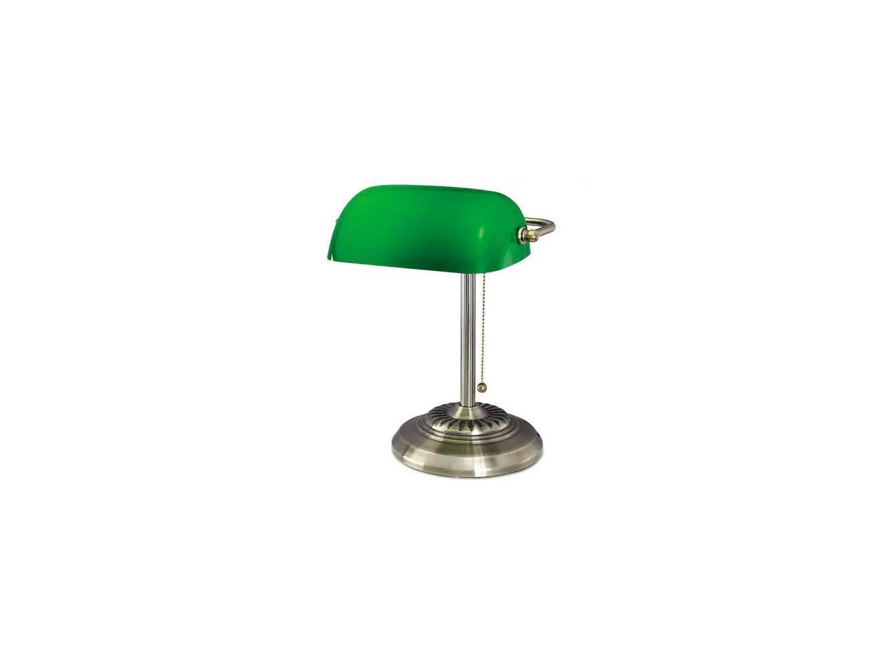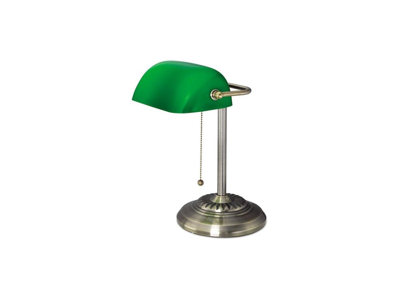 Traditional Banker's Lamp, Green Glass Shade, Antique Brass Base, 14"h LMP557AB
