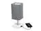 Simple yet fun, this fashionable table lamp features a white base and a fabric shade. It comes equipped with a USB seated in the base for use to charge mobile phones, handheld games, tablets, and other small electronics. This lamp will add a fabulous flair to any room. Perfect for bedrooms, kids and teens, college dorms, nurseries, or fun offices!