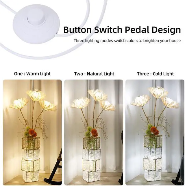 Three Lighting Modes - Pastoral floor lamp cable length 74.8 inch, creative floor lamp with four bulbs features three lighting colors warm/natural/cold lights, to suit your environment, makes the living room area cozy, easy to adjust the lighting through turn on / off, create the most suitable lighting for your environment. Eye caring led bulb wont hurt your eyes
