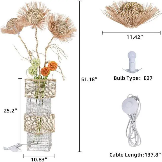 Romantic Decor Light - Rattan weaving floor lamp which is beautiful decorative, standing light bulb floor lights with handmade tree lanterns artificial dandelion flowers, very aesthetic compatible with most furniture decorations. Modern floor lamp place it to your home, living room, bedroom, sofa side, study, balcony, etc, can add a gorgeous and elegant romantic atmosphere to your home environment