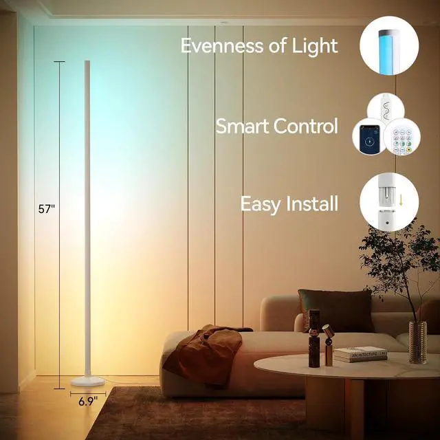 Customize your living room and bedroom with SUNMORYs smart lights, offering various colors and modes to suit your personal taste. The smart combination design of the table lamp and modern floor lamp is suitable for various spaces, from cozy corner light to central room lights. The simple installation process and 24-hour customer service ensure a worry-free experience, making it the top choice for upgrading home lighting