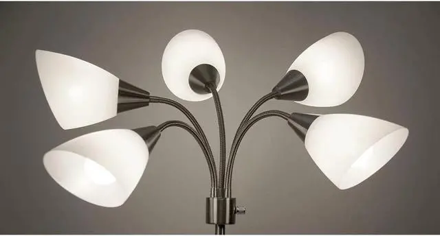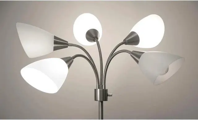 LIGHT WHEREVER AND WHENEVER YOU NEED IT Thanks to the five movable shades, the lamp lights can be aimed in various directions. Great for lighting large living/dining rooms, office spaces, or even hallways.